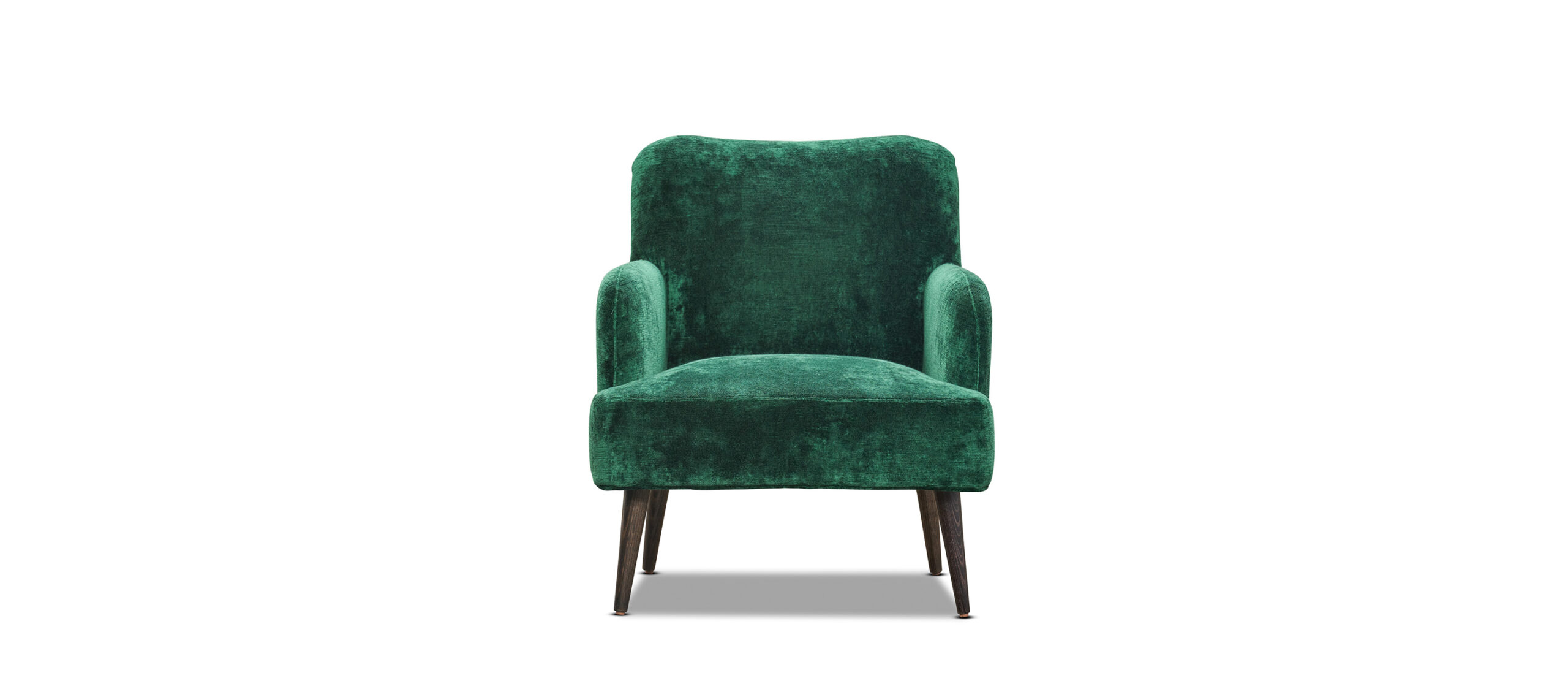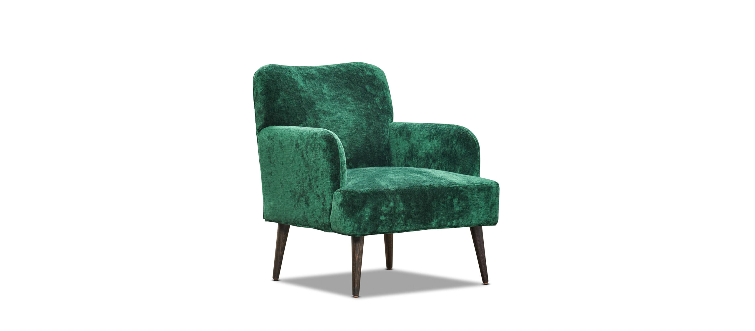 A stylish, small footprint armchair, with subtle curves and solid timber legs. Especially suited to the bedroom or smaller living areas. Upholstered in the Catherine Martin for Mokum Bespoke velvet in a vibrant Emerald hue. Made in Melbourne.